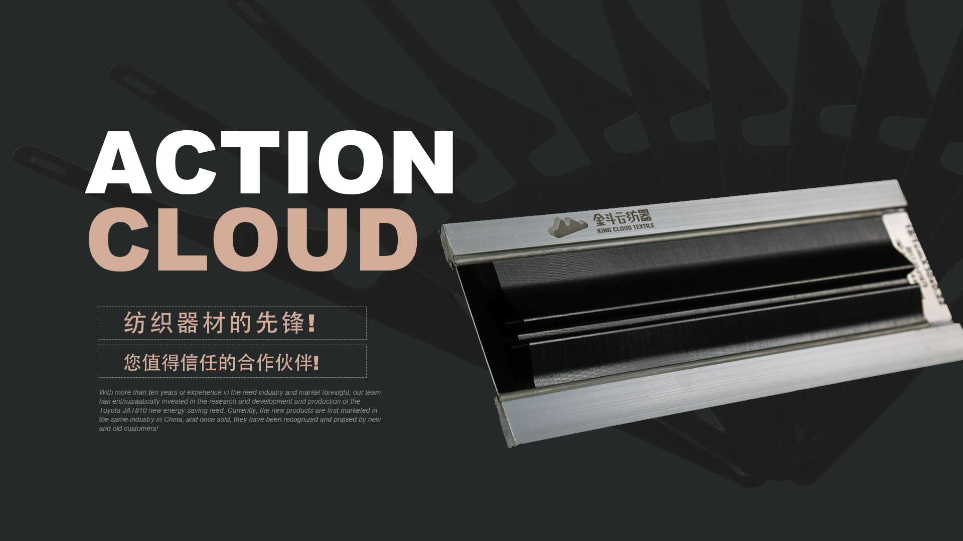 憑借十多年鋼筘行業經驗及對市場的前瞻性,我們團隊滿懷熱情的投入到豐田JAT810新型節能鋼筘的研發和生產當中,目前新產品在國內同行業中先行上市銷售,一經銷售就得到了新老客戶的認可和好評!
